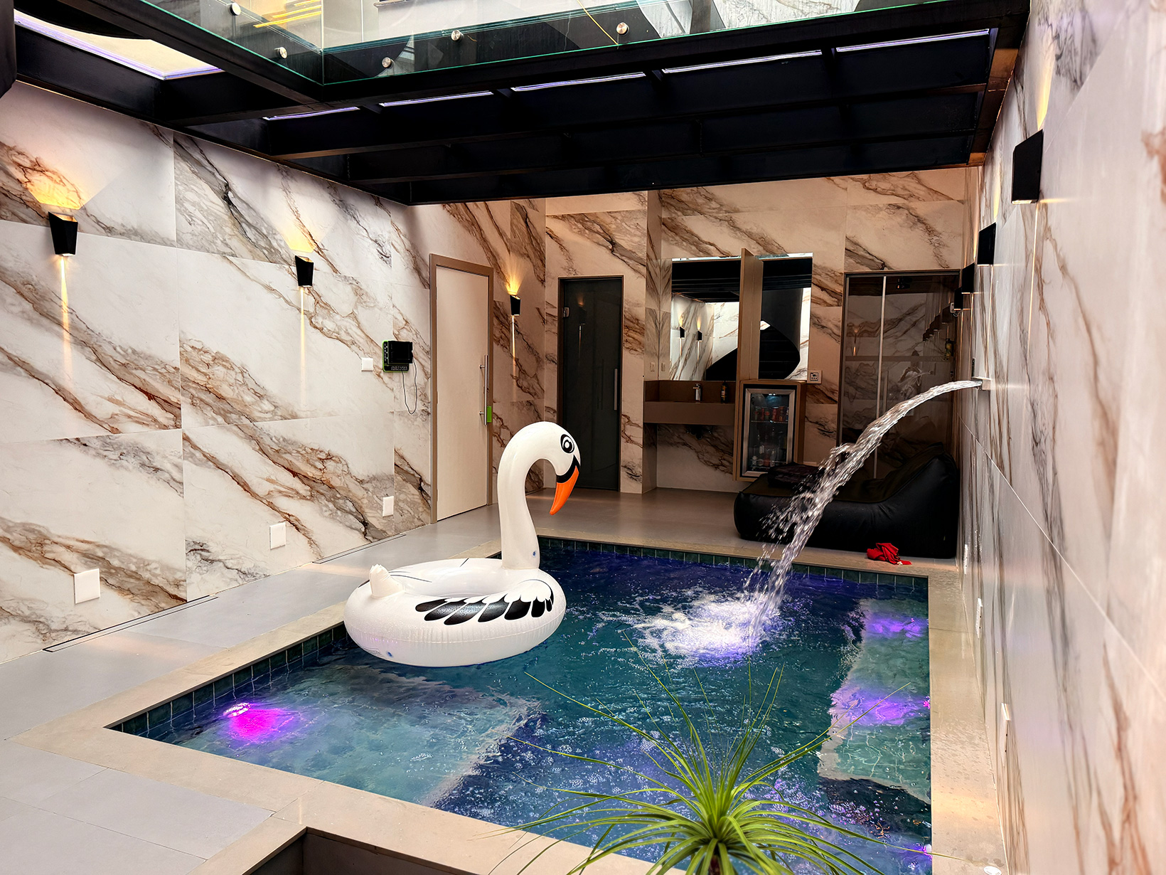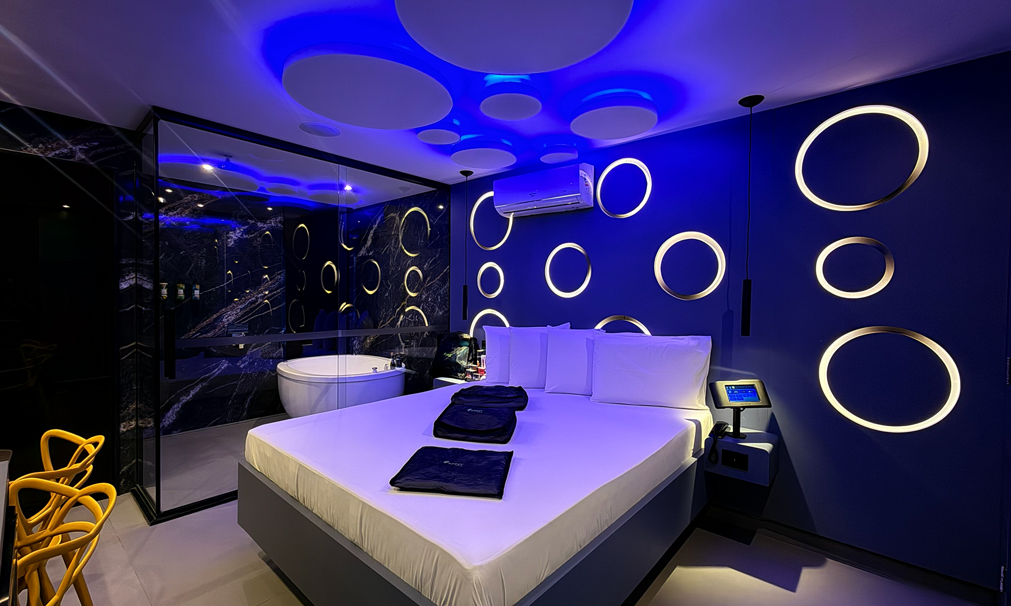 S u í t e Suíte Mint Sky A partir de R$ 399,00 Air Split,Bluetooth,Cadeira Erótica,Cascata,Ducha Dupla,Duplex,Frigobar,Hidro Dupla,Piscina Aquecida,Sauna a Vapor,Secador de Cabelos,Teto Solar,TV a Cabo,Wifi Grátis